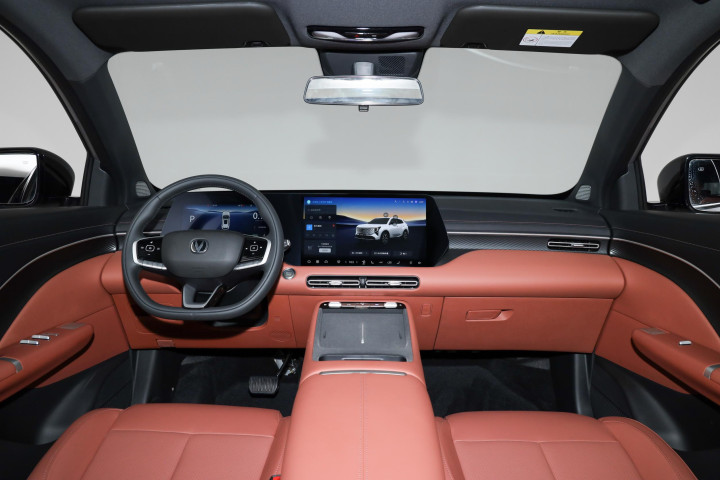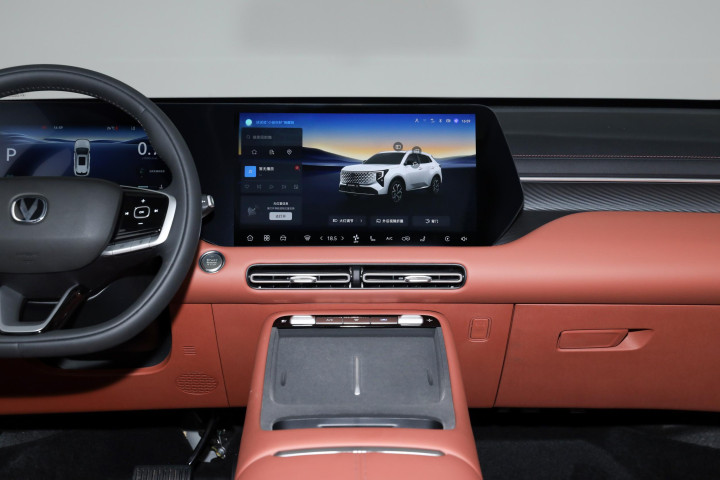 进入车内,感受到了明显的升级和用心。内饰风格更现代,采用了怀挡设计,简洁且有科技感。怀挡的位置设计合适,操作起来很自然,避免了传统档杆占据过多中控空间的问题,也为中控台留出了更多布置空间。最大的亮点是那块14.6英寸的中控大屏,屏幕很大,画面清晰,触控反馈灵敏,操作系统界面流畅易用。屏幕集成了导航、多媒体和车辆设置等功能,减少了物理按键,车内显得更简洁,提升了整体的科技感。