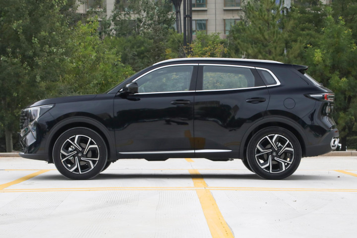 车身侧面没有太多花哨的线条,但比例协调,看起来稳重且有力量感。车顶线条平直,配合车窗边框的黑色饰条,整体风格偏向成熟稳重,适合不同年龄层的消费者。轮毂造型简洁大方,尺寸适中,与整车风格搭配得不错。这样的设计不会过于张扬,也符合大多数家庭用户的审美。